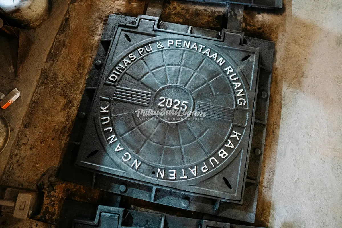 Pemerintah Kabupaten Nganjuk menjalin kerja sama dengan Grill-Manholecover.com melalui Putra Sari Logam untuk memastikan kualitas dan ketersediaan produk. Pemerintah memesan manhole cover custom sesuai kebutuhan lapangan dan menambahkan identitas “DINAS PU & PENATAAN RUANG KABUPATEN NGANJUK” berukuran 100×100cm. Identitas tersebut meningkatkan nilai estetika sekaligus memperjelas kepemilikan aset.